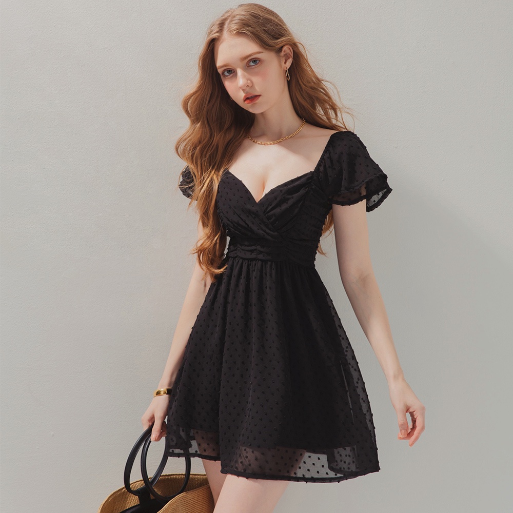 AIR SPACE 甜美層次袖點點雪紡短洋裝(白/黑)