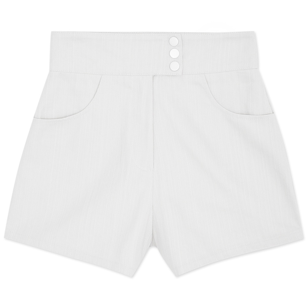 AIR SPACE 高腰排釦斜紋短褲(白)