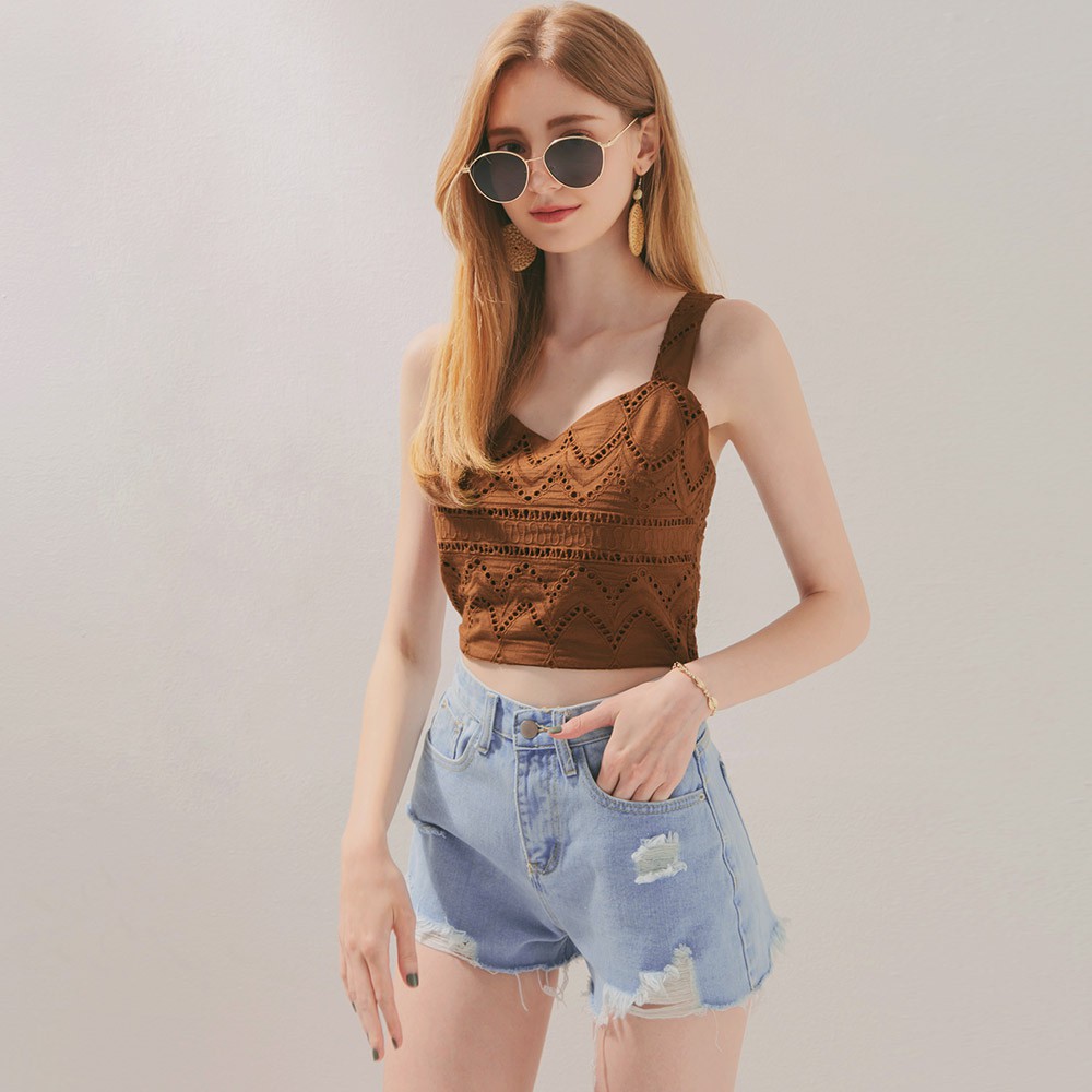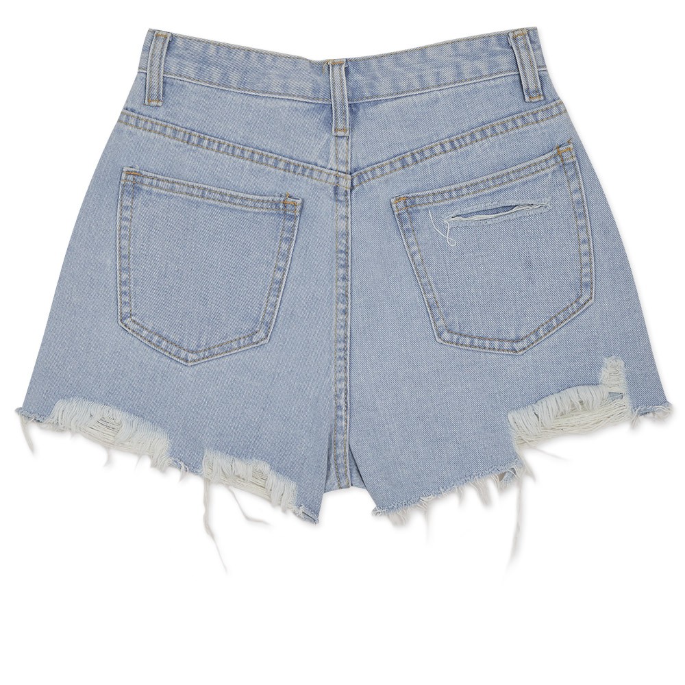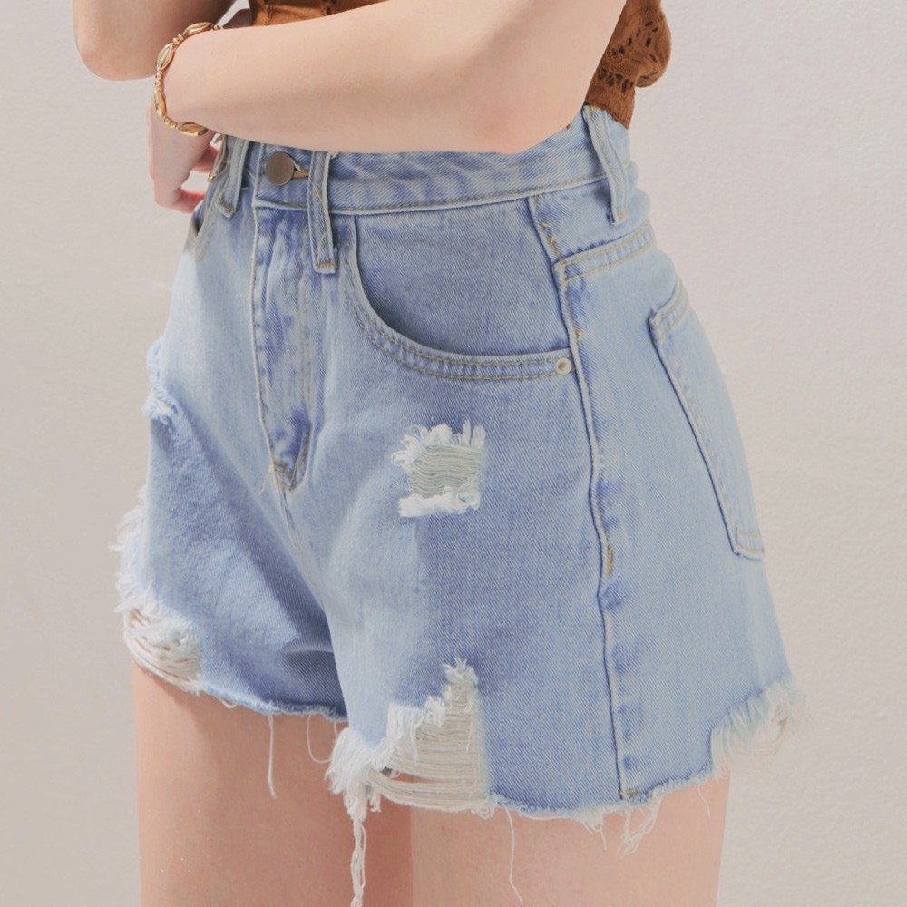 AIR SPACE 率性褲口刷破牛仔短褲(淺藍)