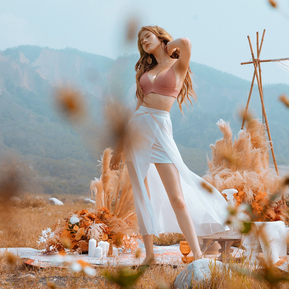 AIR SPACE 小臀視覺高腰側綁鏤空美臀泳褲(藕) 女款 女生泳褲 泳裝 低腰 高腰 泳褲 中大尺 碼 溫泉