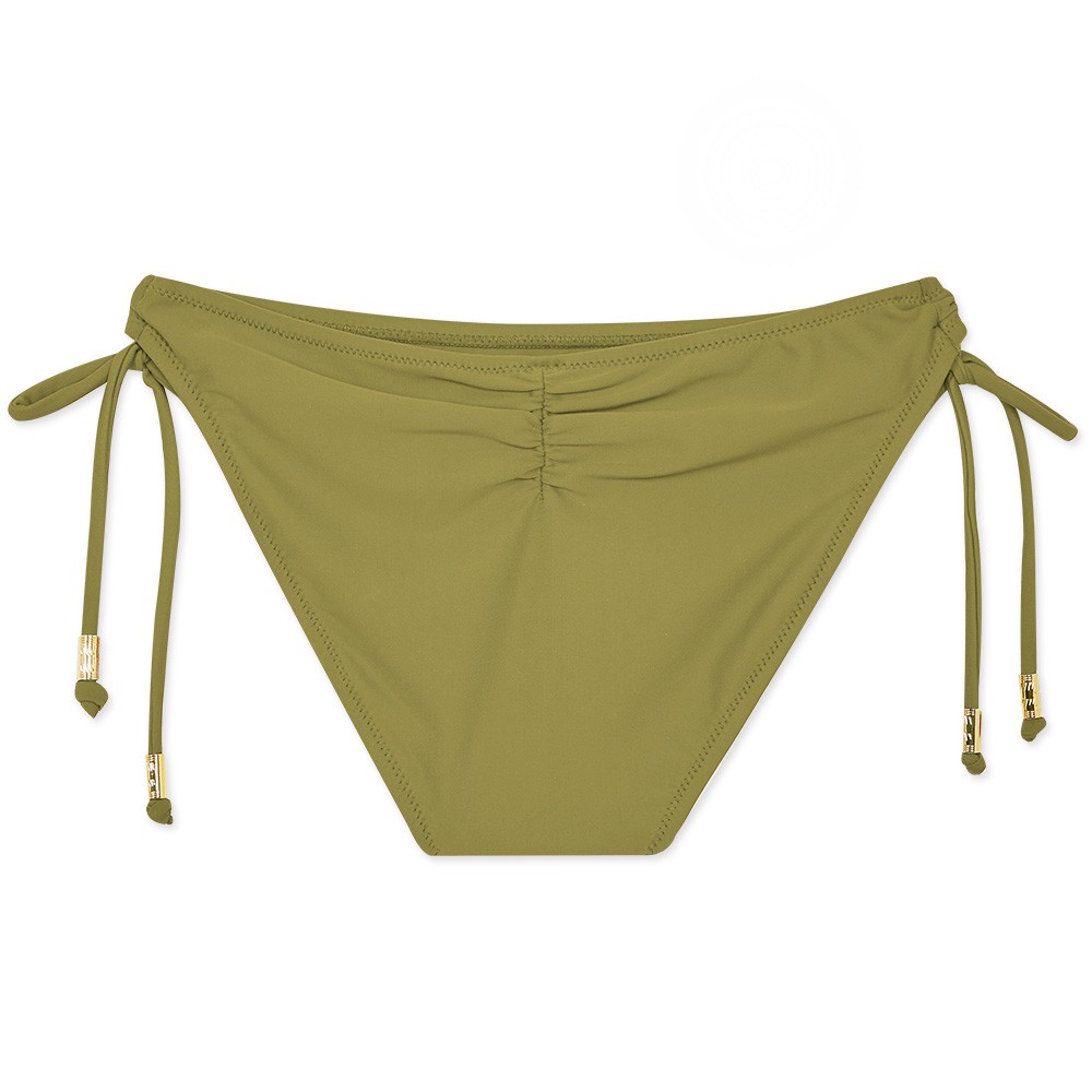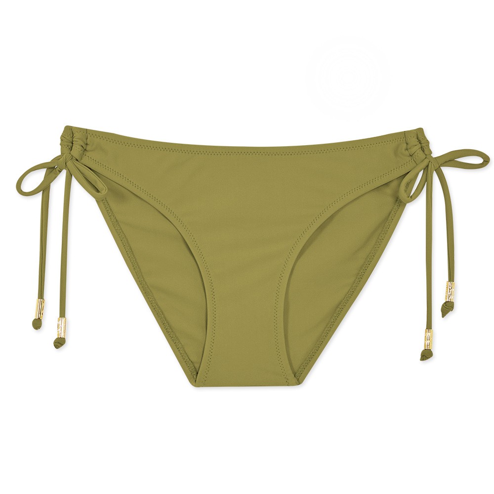 AIR SPACE 素色側綁帶抽皺翹臀泳褲(抹茶綠) 女款 女生泳褲 泳裝 低腰 高腰 泳褲 中大尺碼 溫泉