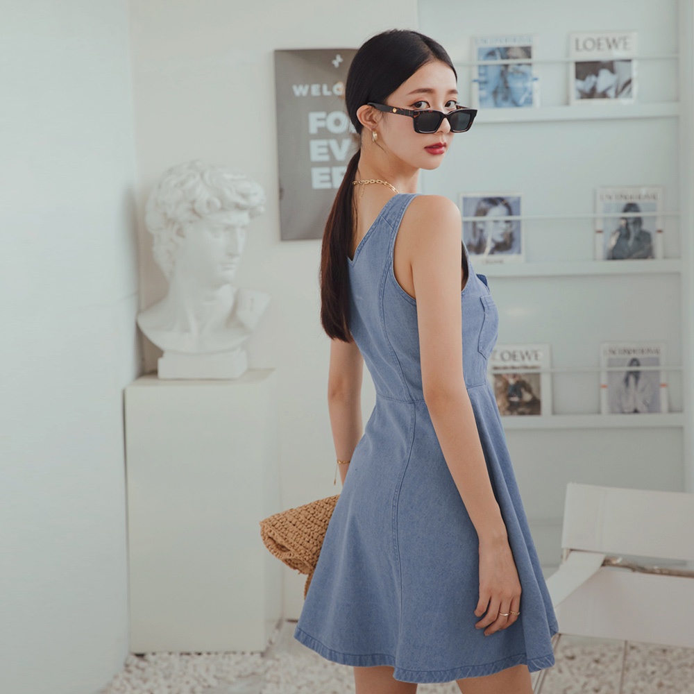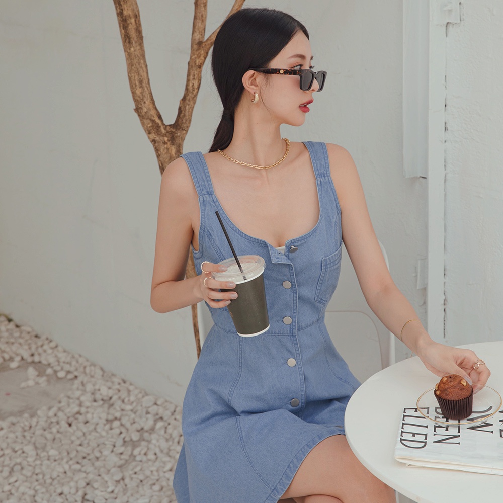 AIR SPACE LADY 時髦排釦A字牛仔短洋裝(藍)