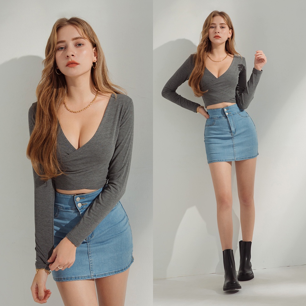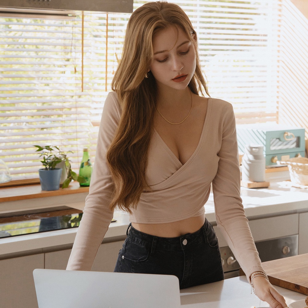 AIR SPACE 2WAY交叉造型短版刷毛上衣(杏/黑/深灰)