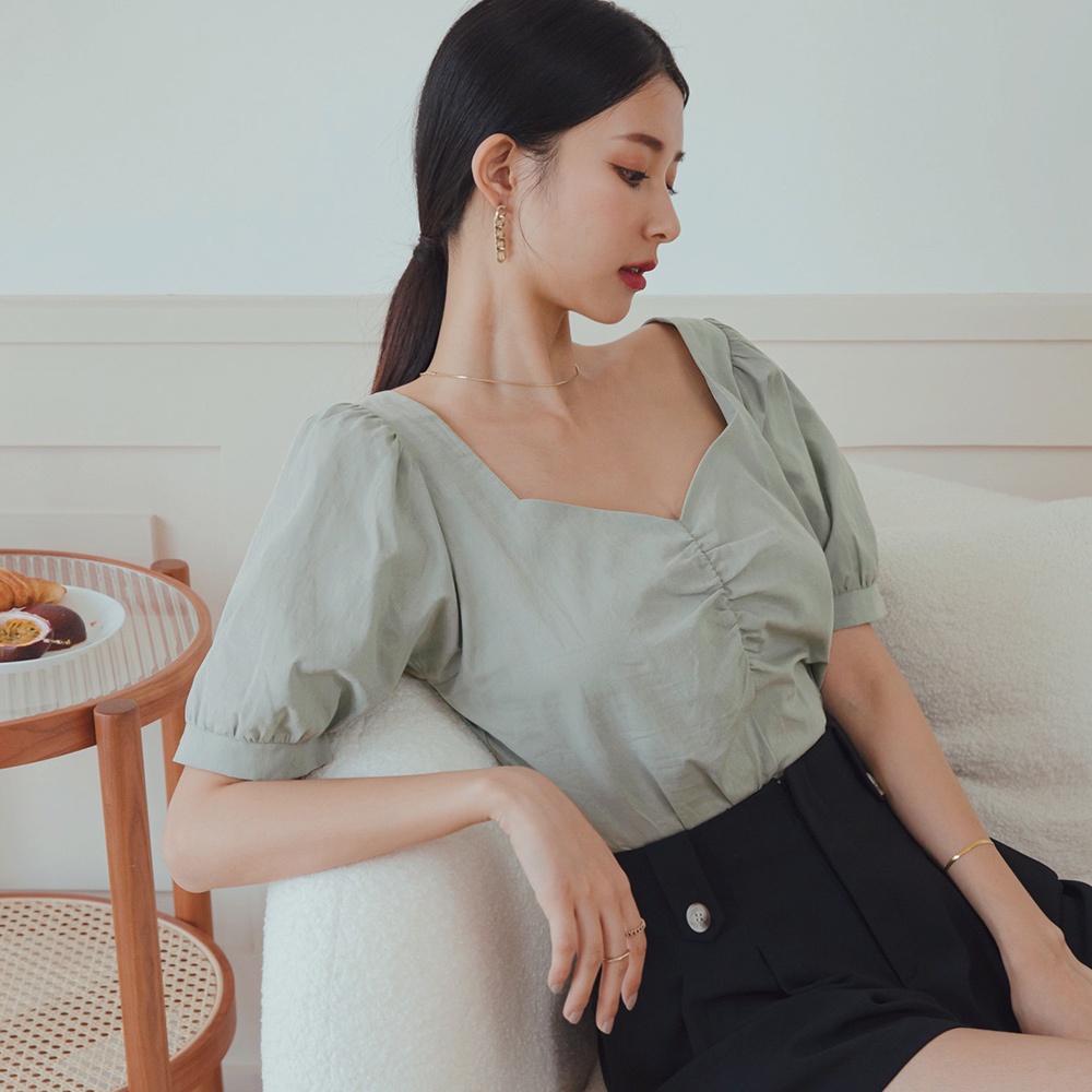 AIR SPACE LADY 桃心方領背抽皺綁帶上衣(薄荷綠)