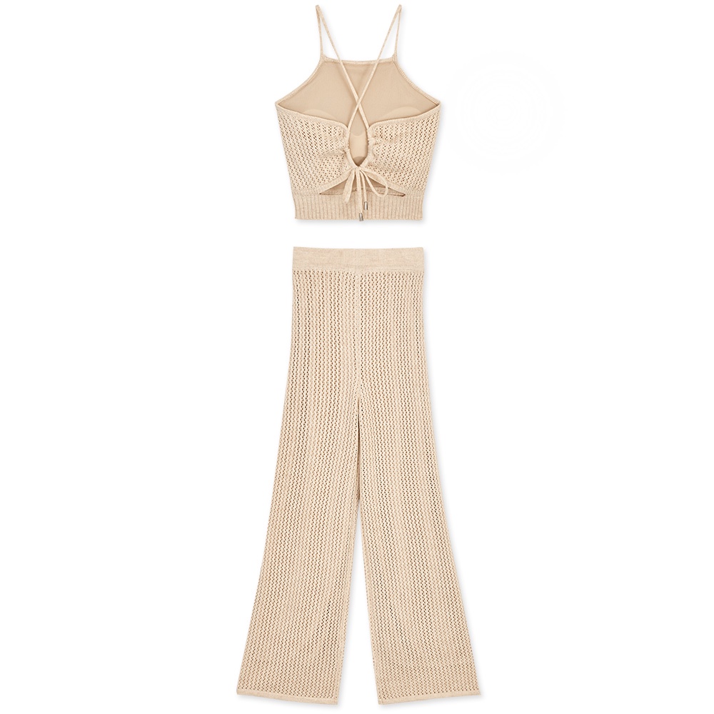 AIR SPACE 鏤空紋美背綁帶背心褲套裝(附胸墊)(杏) 女裝 現貨