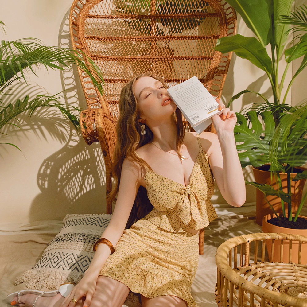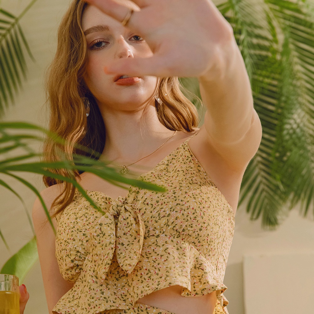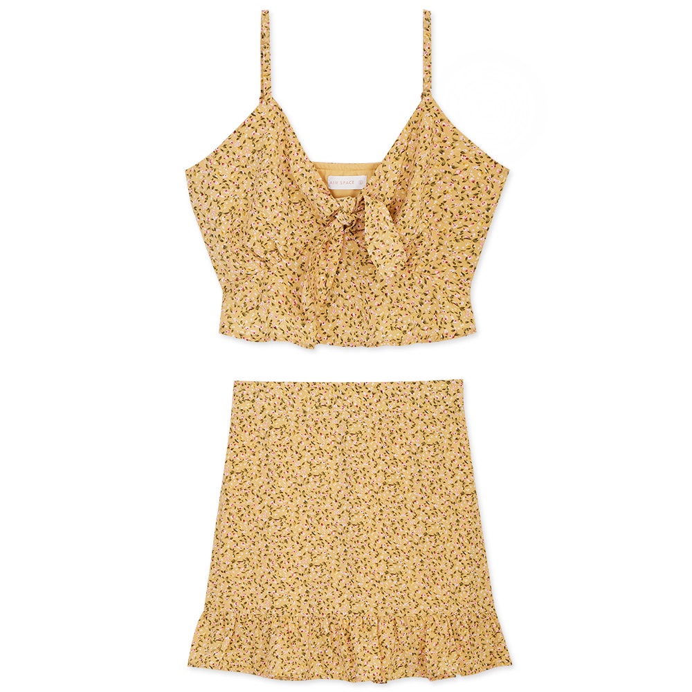 AIR SPACE 碎花背心荷葉裙套裝(黃)