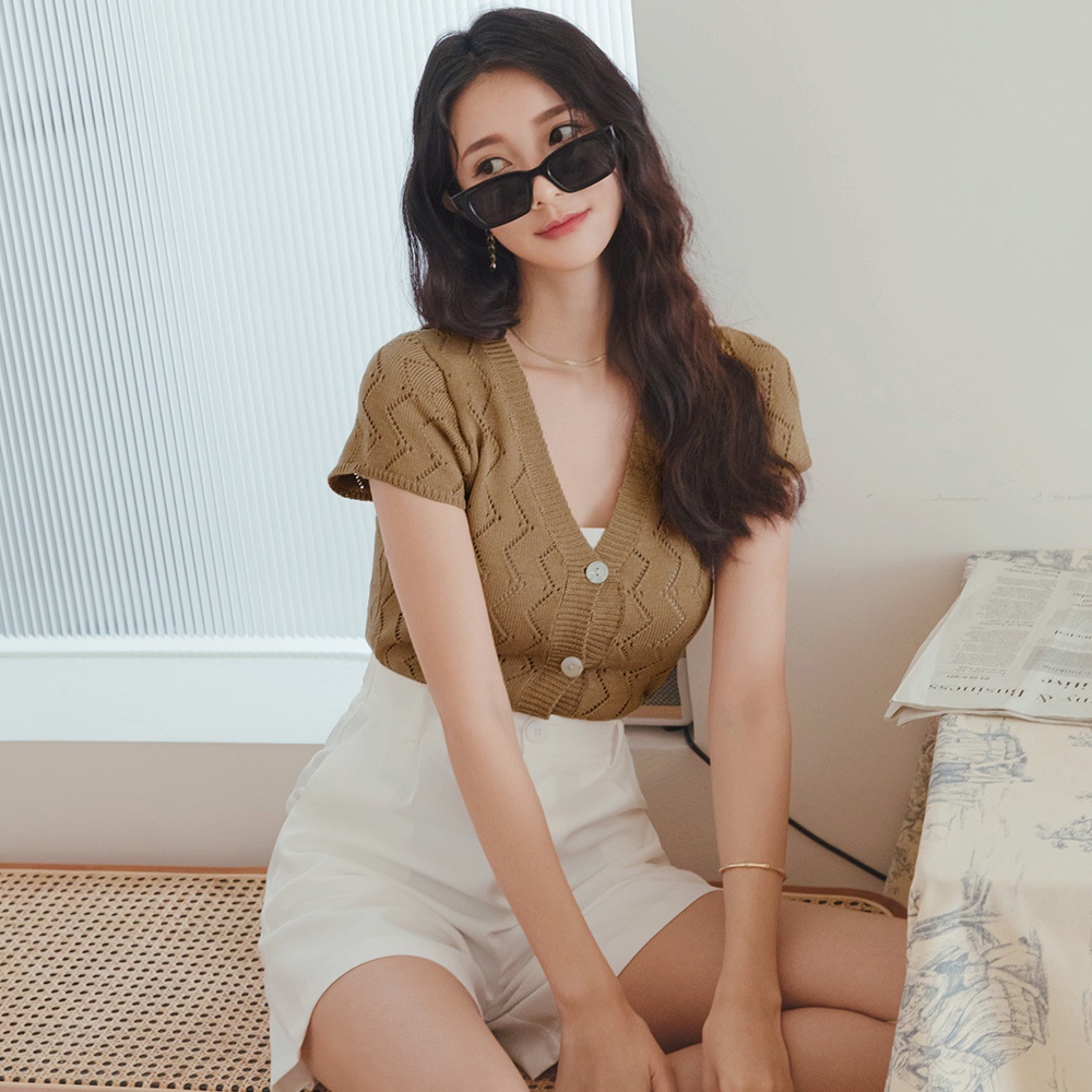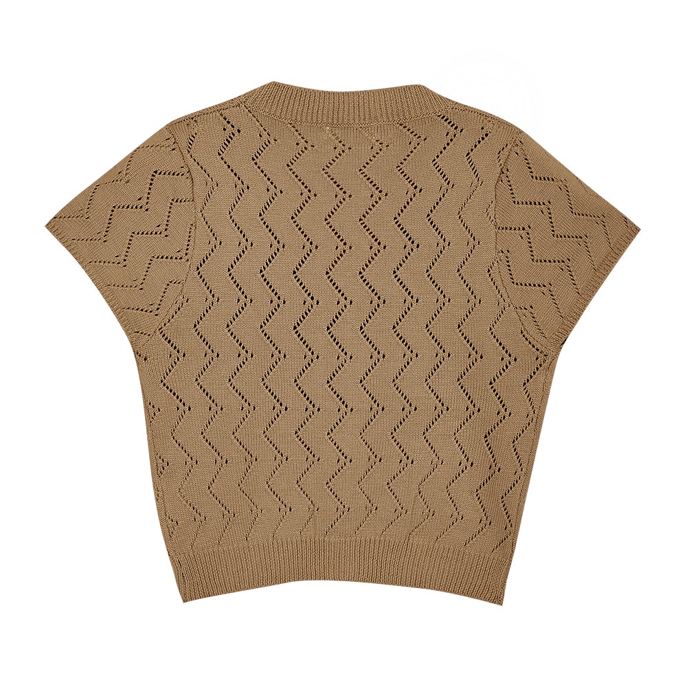 AIR SPACE LADY 幾何鏤空排釦針織上衣(駝)