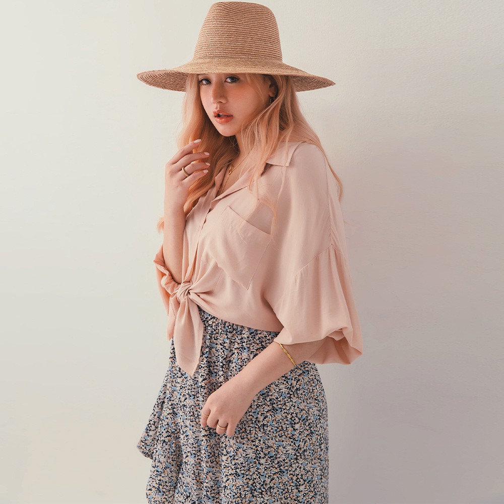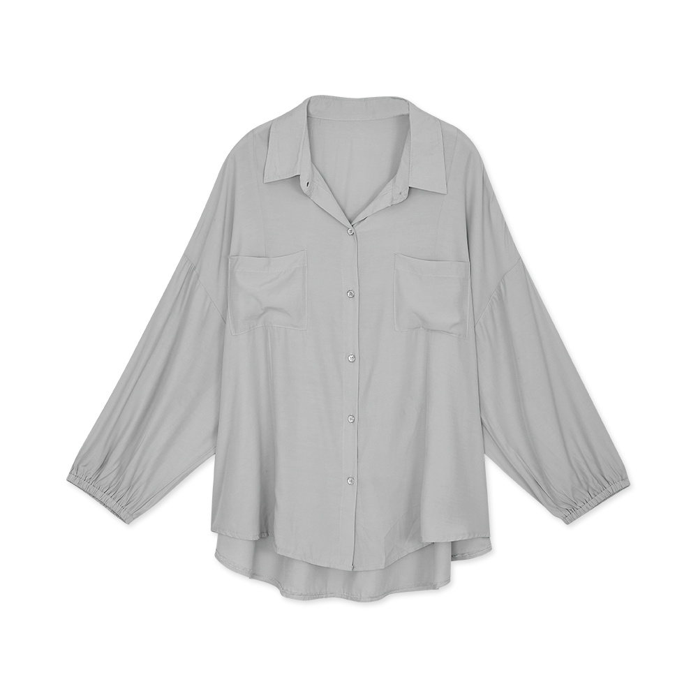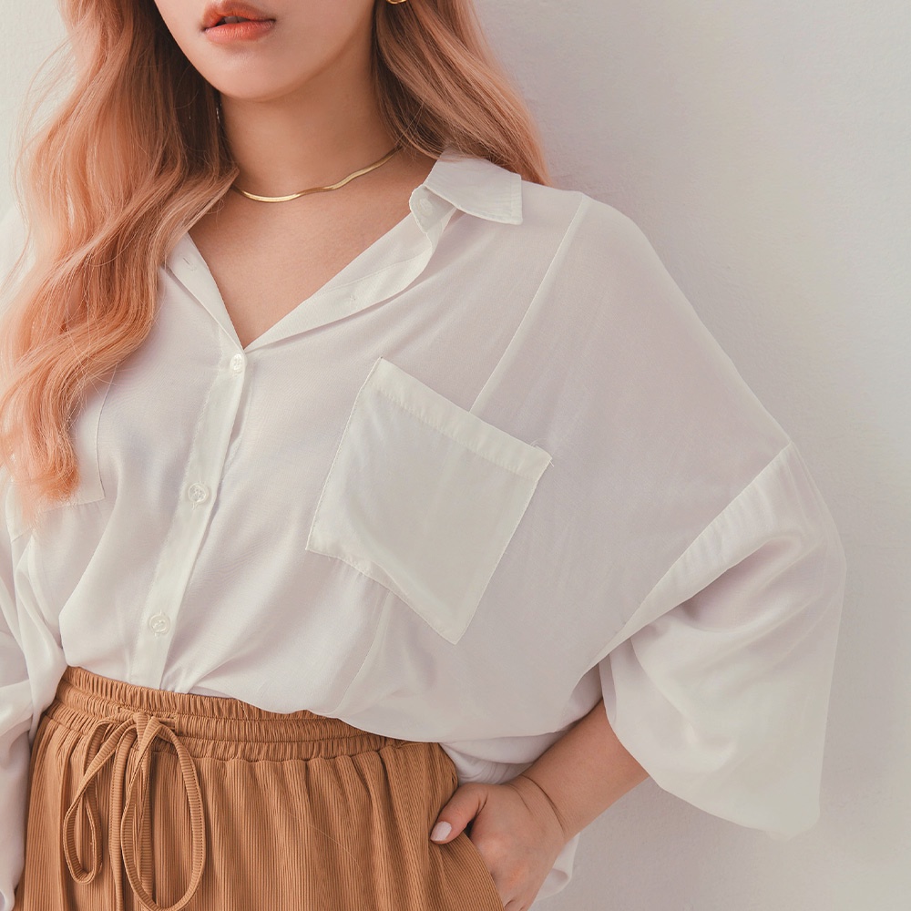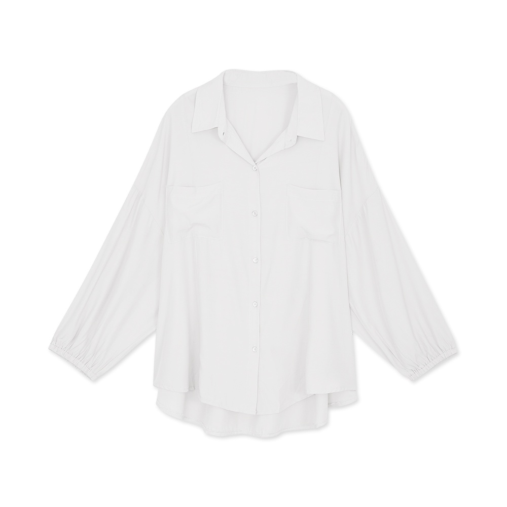 AIR SPACE LADY 中大尺碼 涼感慵懶澎袖襯衫(粉紅/白/淺灰) 女裝 現貨 大尺碼