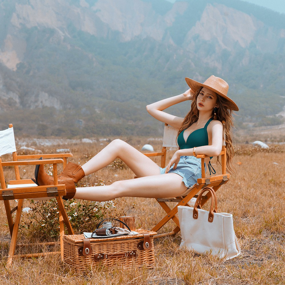 AIR SPACE 極致包覆下加寬馬甲美胸比基尼(厚杯款)(藍綠) 泳裝 泳衣 中大尺碼 溫泉 集中 海邊 爆乳