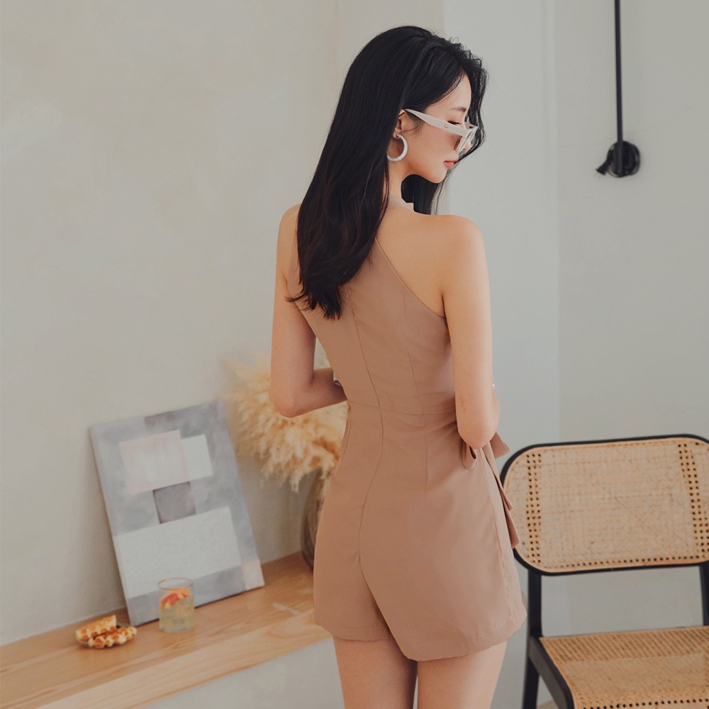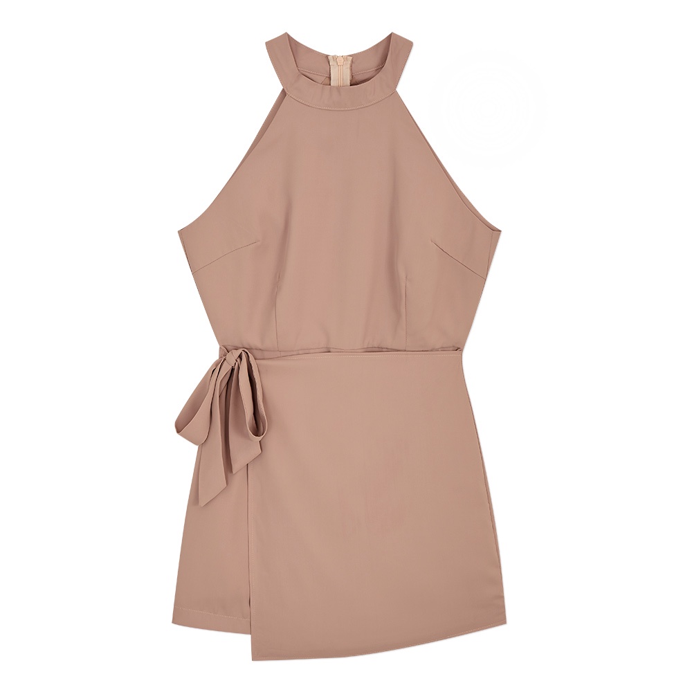 AIR SPACE LADY 知性削肩側綁連身褲裙(藕粉)