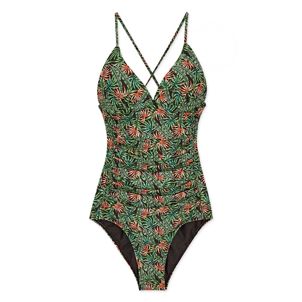 AIR SPACE 人間芭比塑腹印花細肩美背綁帶連身泳衣(厚杯加長款)(烈焰盛 夏) 泳裝 連身 泳衣 中大尺碼 溫泉