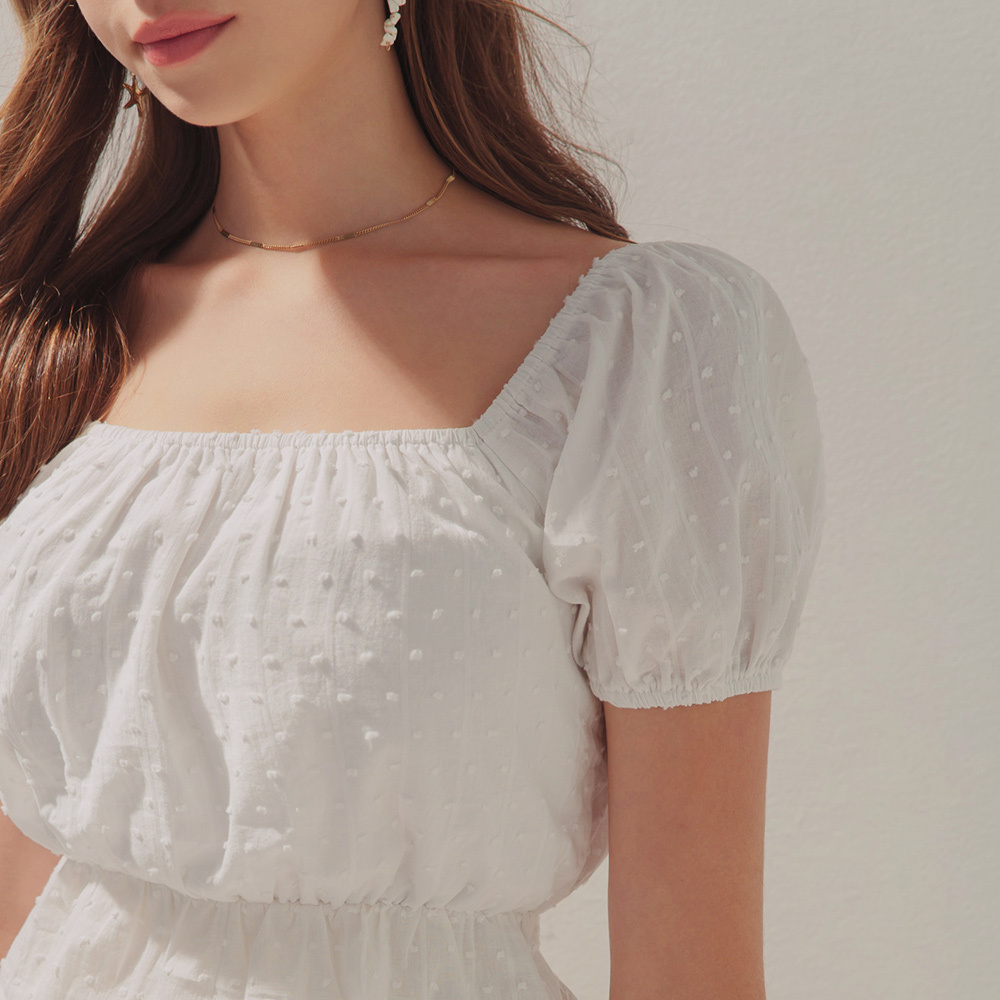 AIR SPACE 2WAY點點方領澎袖短版上衣(白/黃咖)
