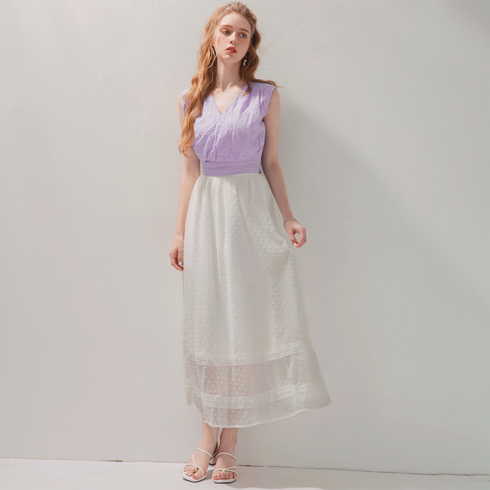 AIR SPACE 燒花蕾絲V領綁帶背心(紫)