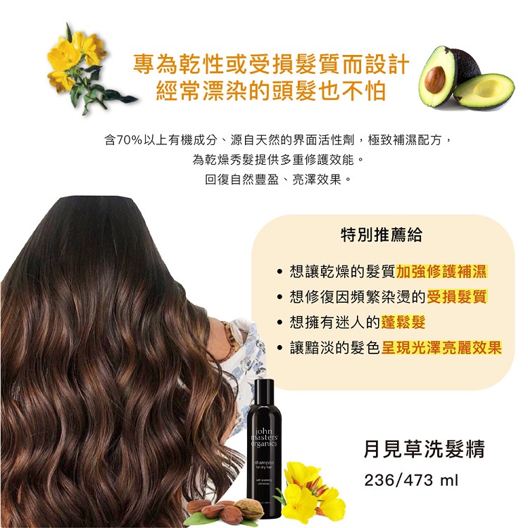 John masters organics 假期系列 - 月見草/薰衣草酪梨洗潤組 (贈月牙形頭部按摩刷) 473mlx