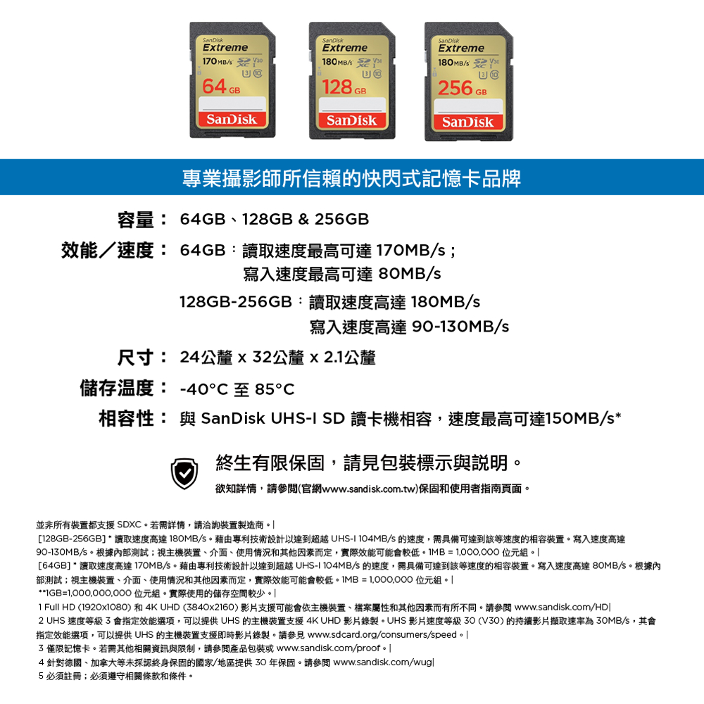 SanDisk Extreme SDHC/SDXC UHS-1(V30) 記憶卡 【32GB~64GB】公司貨