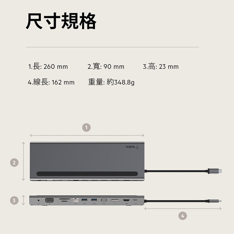 【Belkin】貝爾金USB-C 11合1多埠擴充座(INC004btSGY) VGA、HDMI、DisplayPort