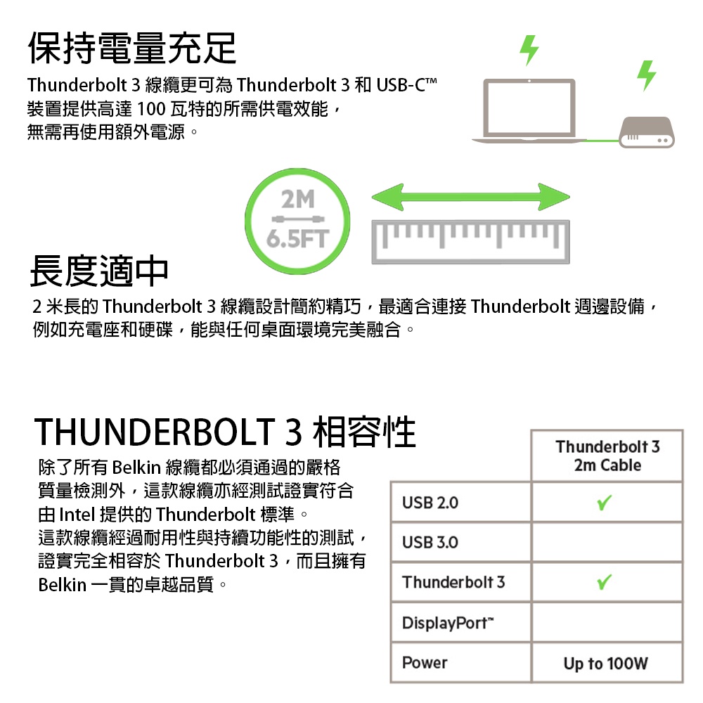 【Belkin】貝爾金USB-C轉USB-C高速傳輸線(Thunderbolt3)(0.8M/2M)充電線40Gbps