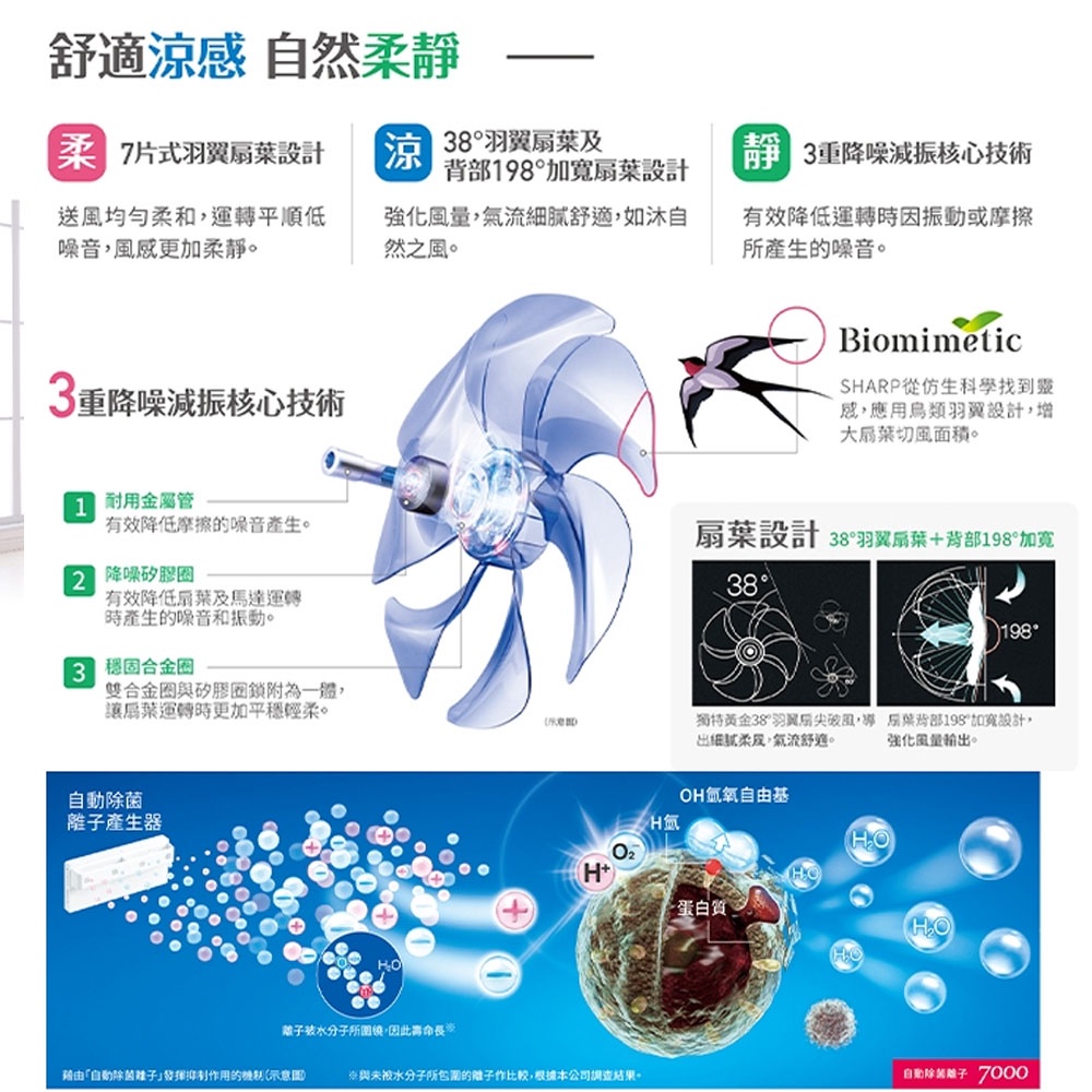 【SHARP】夏普 14吋電扇 自動除菌離子DC直流馬達立扇 PJ-H14PGC 電風扇