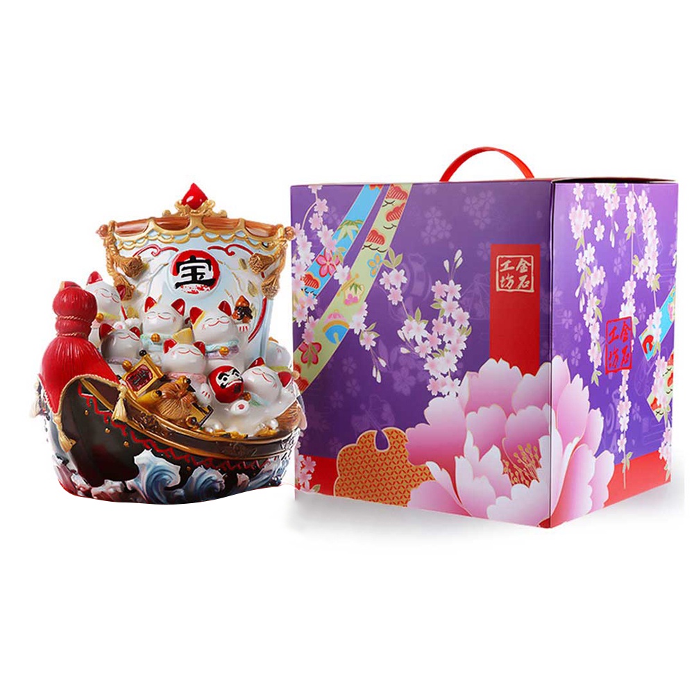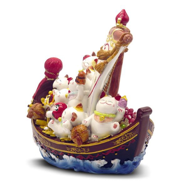 【金石工坊】 七福招財貓寶船(高25CM)日本料理店 風水開運擺飾 一帆風順 開店送禮 開業禮品