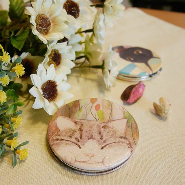 【貓粉選物】貓咪隨身鏡-虎斑貓 和風水彩系列 雙面鏡 化妝鏡 補妝鏡 小圓鏡