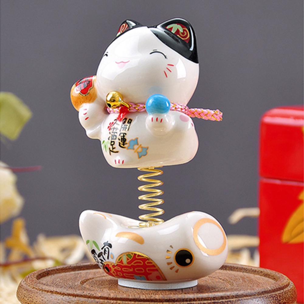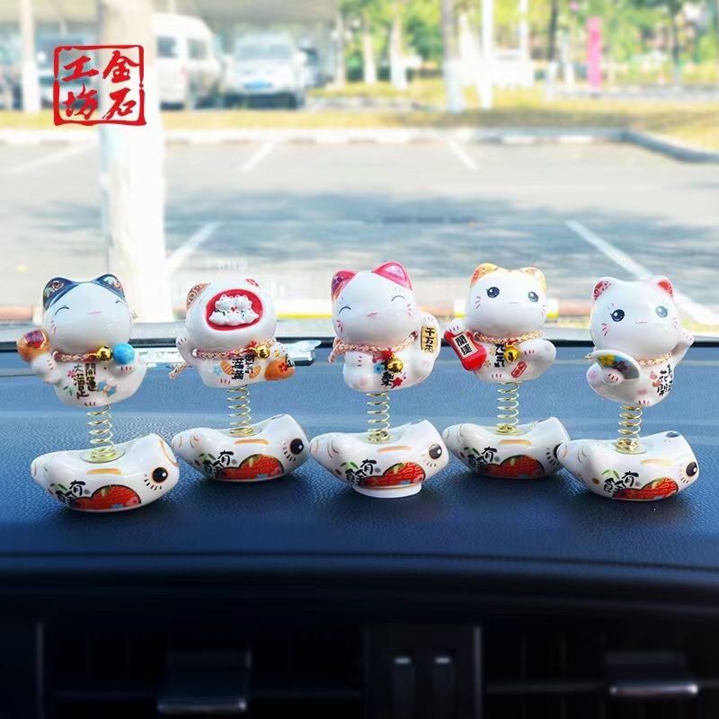 台灣現貨【金石工坊】開運大滿足開運彈簧貓(高8CM) 招財貓 陶瓷桌上開運擺飾 汽車擺件