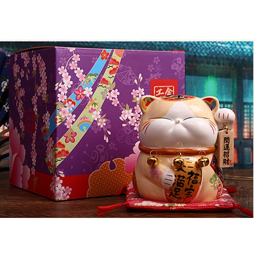 台灣現貨【金石工坊】奶茶波士桃花貓(高12.5CM)招財貓 開店送禮 開業禮品 陶瓷開運擺飾 撲滿存錢筒