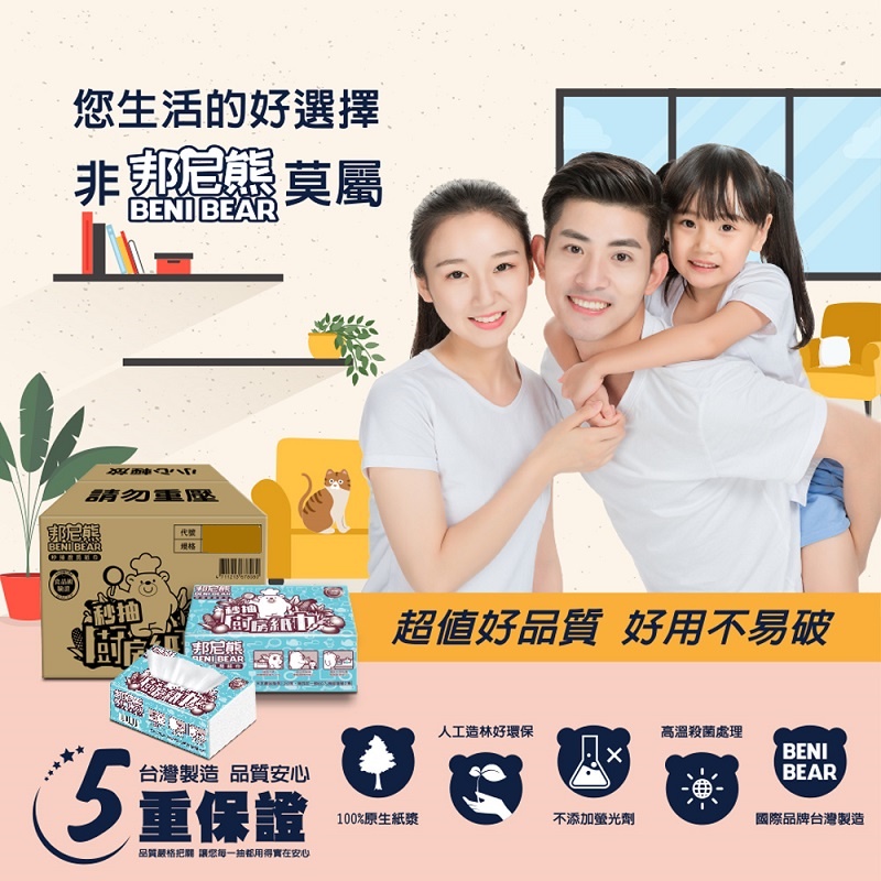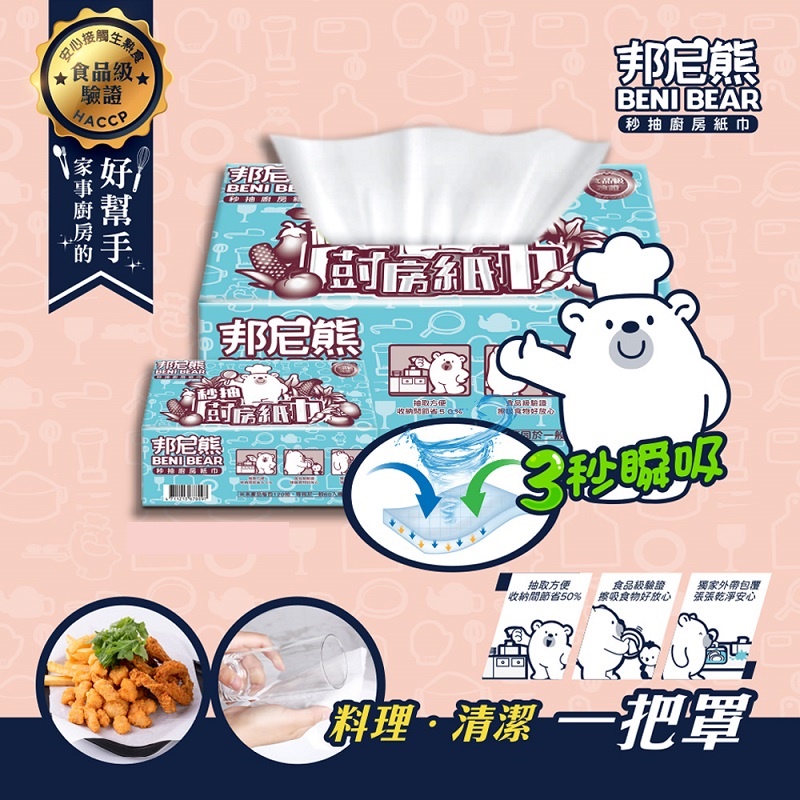 【BENI BEAR邦尼熊】秒抽廚房紙巾100抽24包/箱