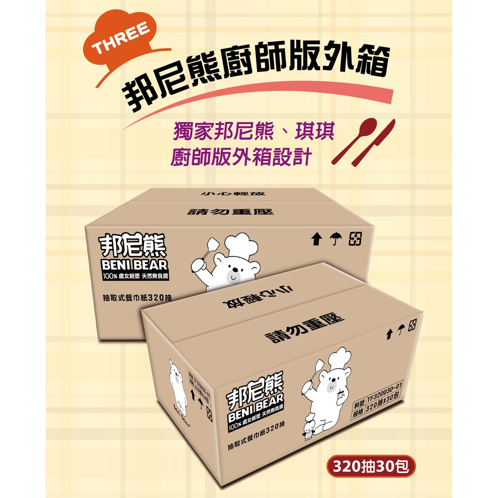 (2箱組)邦尼熊廚師版抽取式柔式紙巾320抽30入/箱