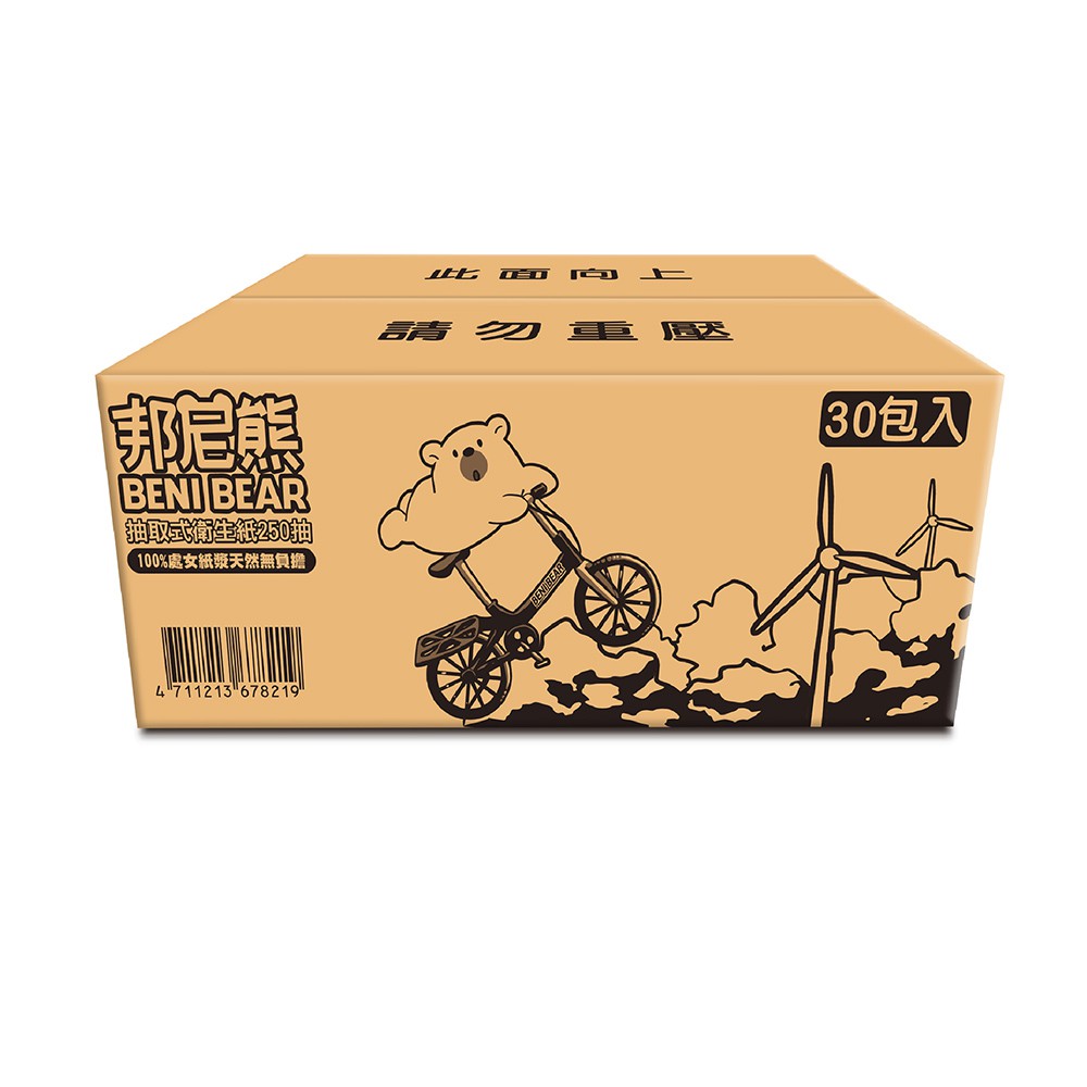 BeniBear邦尼熊抽取式衛生紙250抽x30包/箱(腳踏車版)