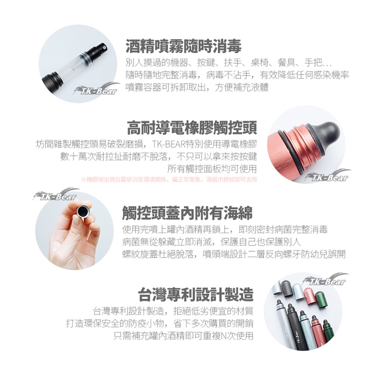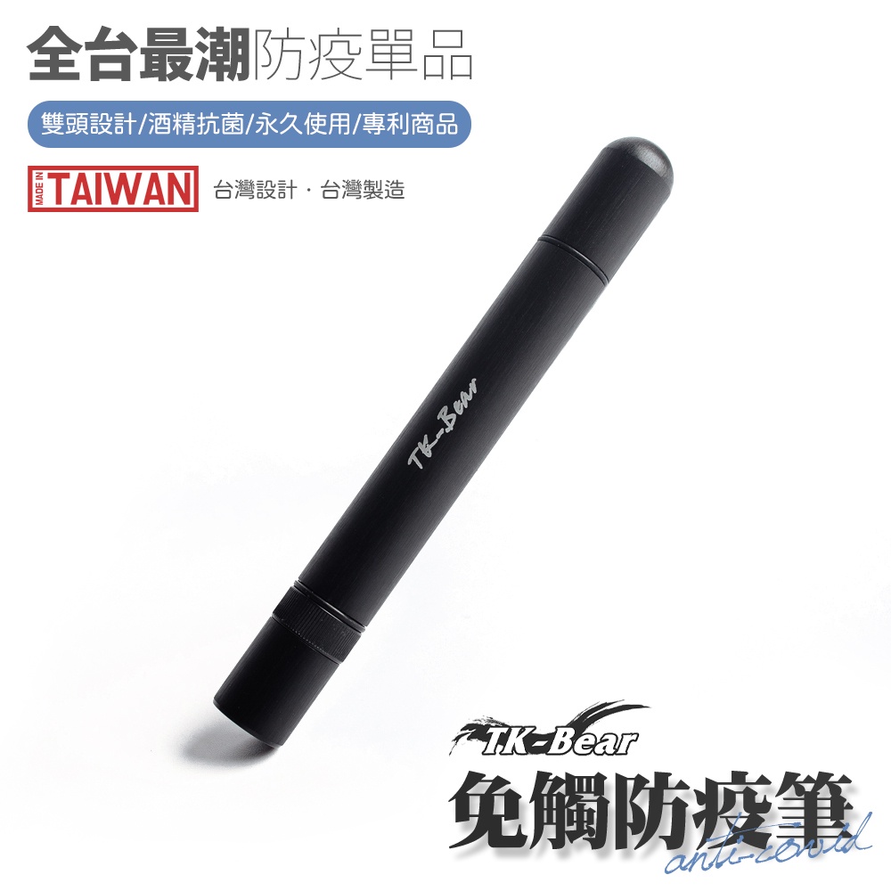 TK-BEAR 多用途防疫觸控筆-黑色 台灣製造 台灣設計(專利商品) 超質感金屬髮絲紋 電梯按鍵筆 防疫噴霧筆 防疫筆