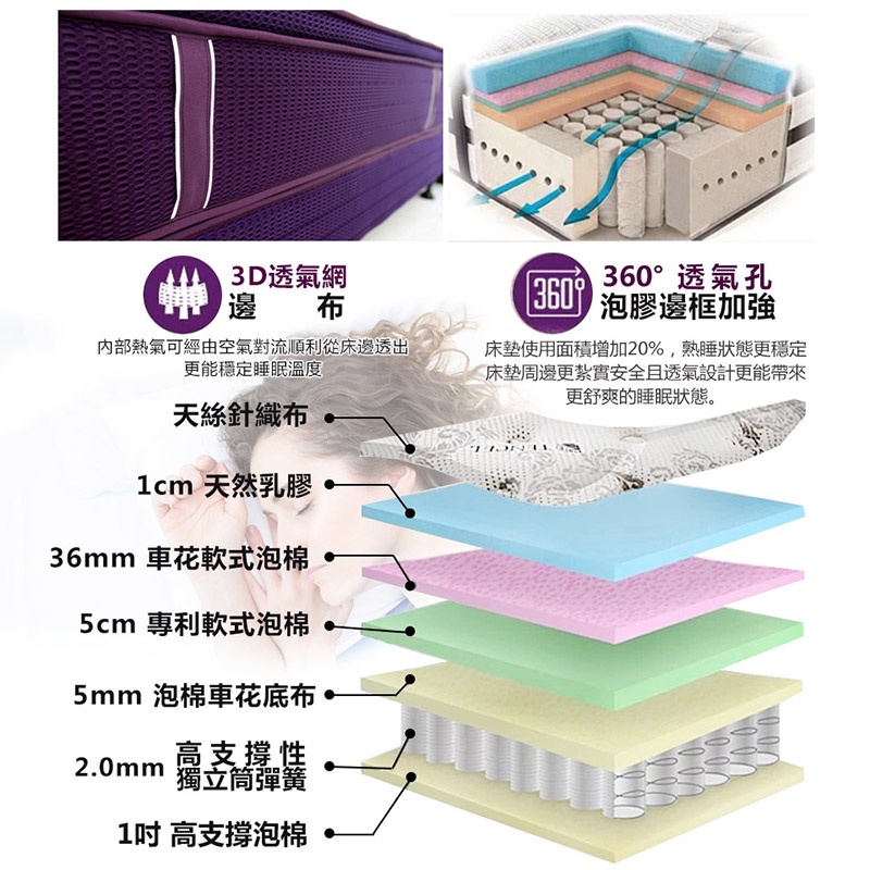 【床的世界】適中偏軟/Q彈乳膠加厚/天絲涼感/360度四邊加強/中鋼獨立筒乳膠床墊適用