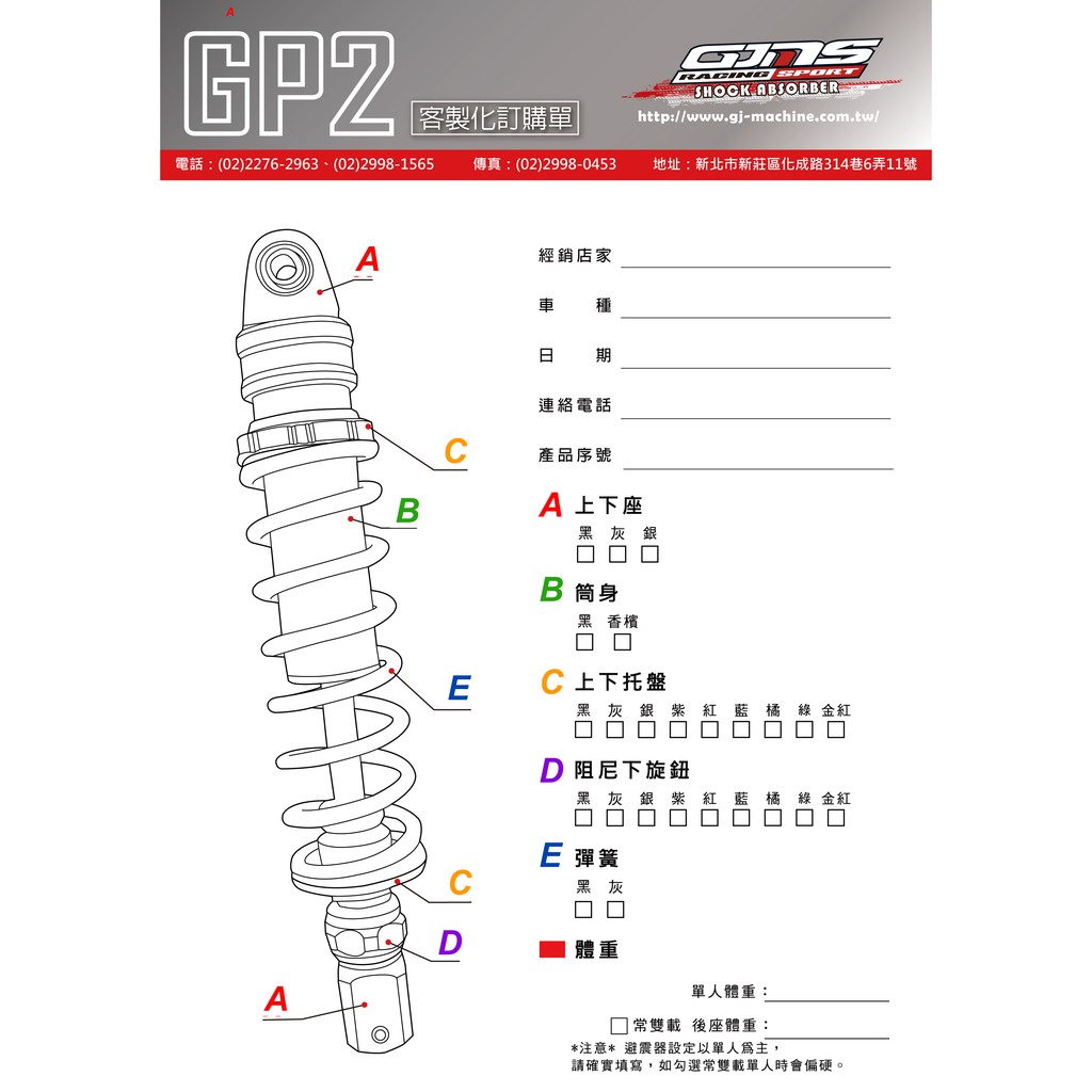 GJMS 智杰 GP2 阻尼可調後避震器 後叉 SMAX/六代戰/水冷BWS/KRV/DOLLAR/FORCE2.0