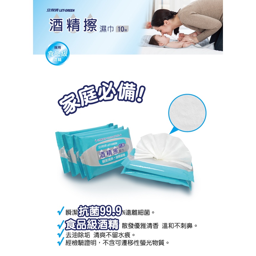 【立得清】酒精擦濕紙巾 清潔抗菌 擦拭無水痕-隨行包(10抽x12包)