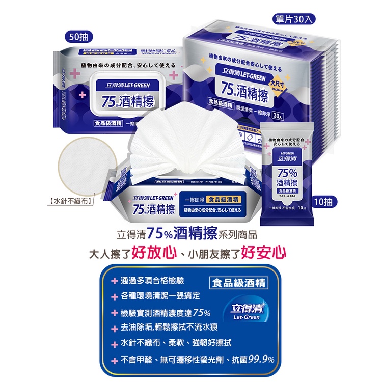 【立得清】75%酒精擦濕紙巾 清潔抗菌 擦拭無水痕-食品及酒精(10抽x60包)