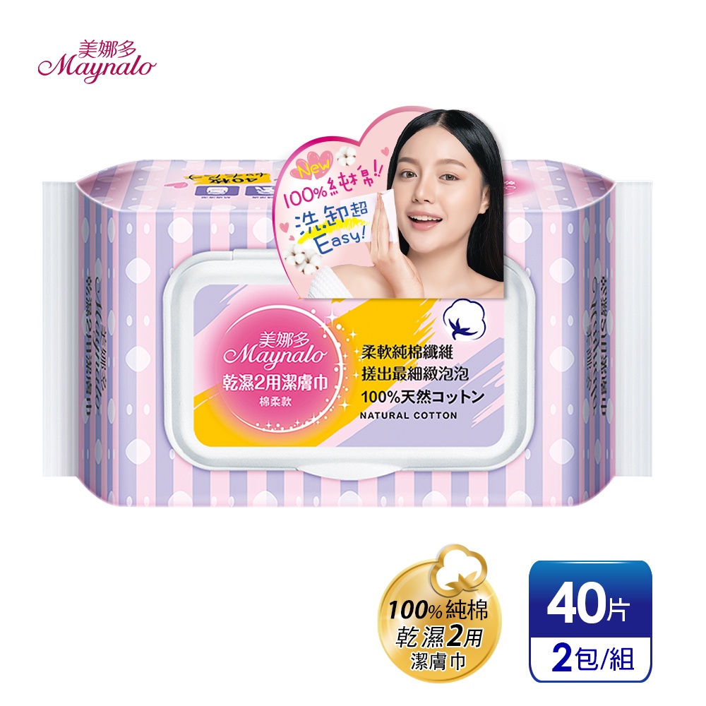 【美娜多】雙功能 乾濕2用潔膚巾(40片x2包)