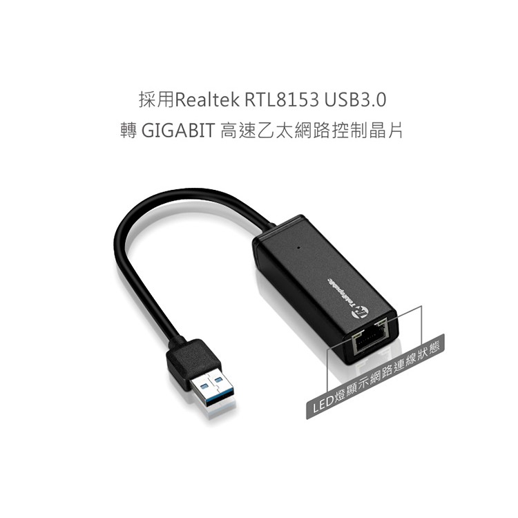 TekRepublic USB 3.0 GIGABIT LAN 鋁合金高速外接網路卡 (TUN-320)