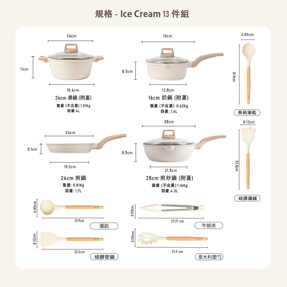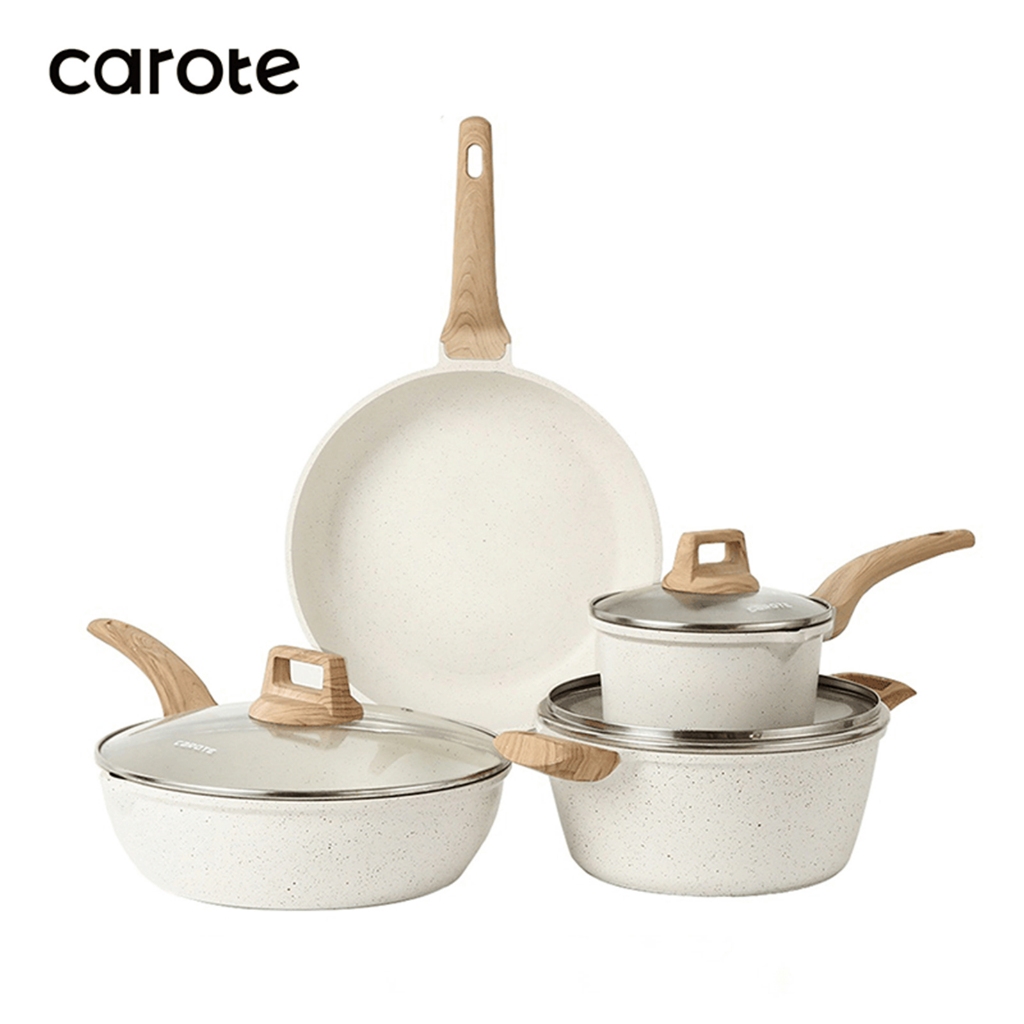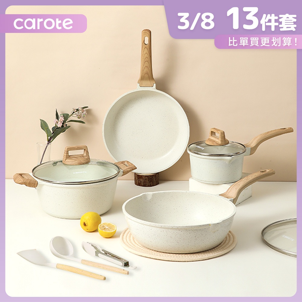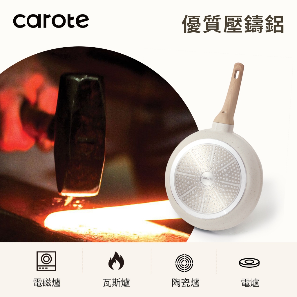 【CAROTE】ICE系列 麥飯石不沾鍋具組 28CM煎炒鍋+24CM平底鍋+16CM泡麵鍋+24CM湯鍋 電磁爐/IH