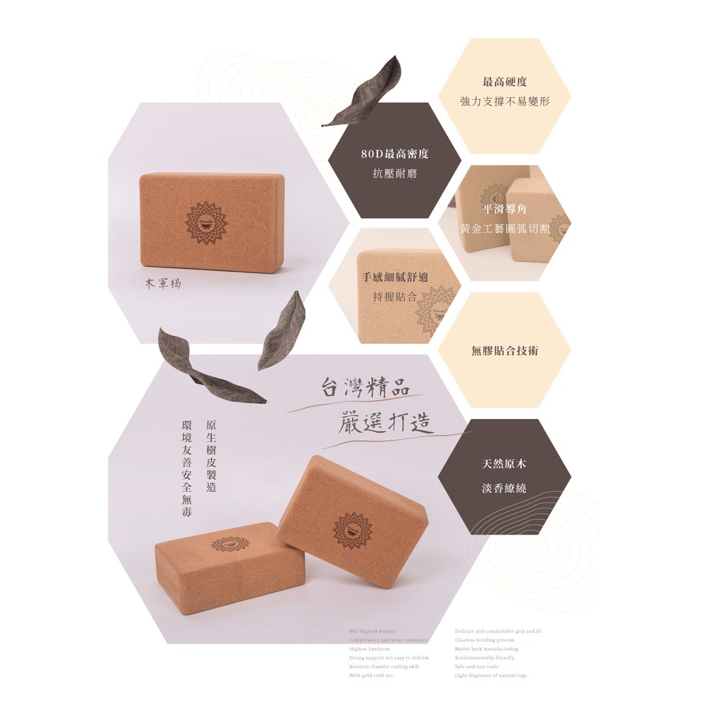 Miracle墨瑞革 台灣製一體成形高密度環保軟木瑜珈磚 80D 木軍褐
