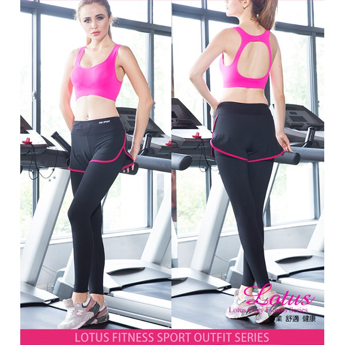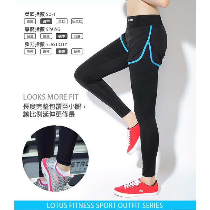 【LOTUS】防走光顯瘦彈力快乾假兩件運動褲-3色