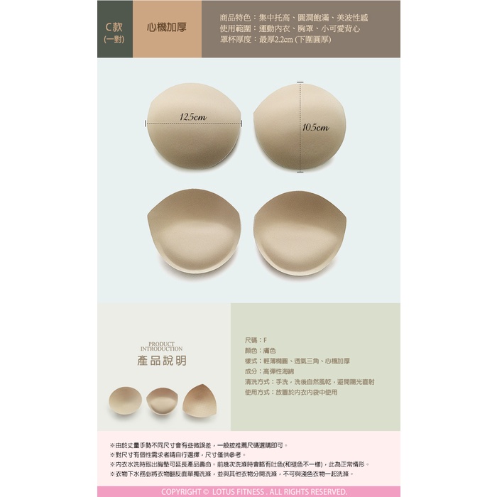 【LOTUS】可拆洗運動內衣胸墊 海棉胸墊 增厚提胸海綿集中胸墊 上薄下厚胸墊 泳衣內衣胸墊 比基尼禮服胸墊 綜合胸墊