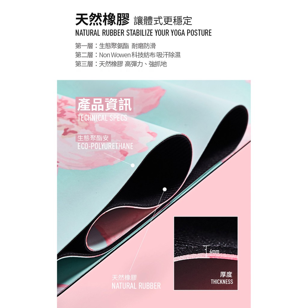 【LOTUS】 SIGEDN 乾溼止滑PU天然橡膠仙女瑜珈墊 4mm 免運 體位線定位線瑜珈墊 PU瑜珈墊 吸濕止滑