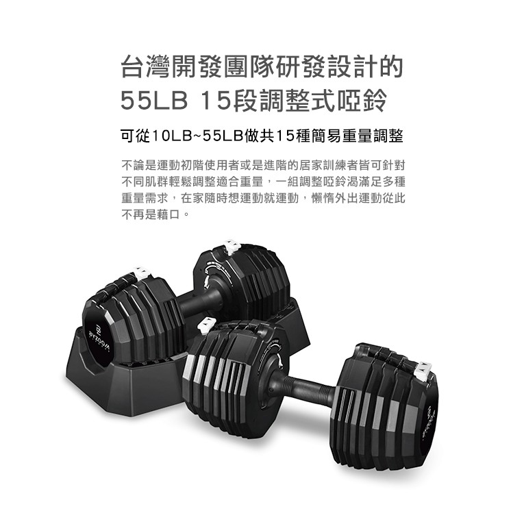 Byzoom Fitness 25公斤(55磅) 15段 速調啞鈴 智慧啞鈴 可調式啞鈴 健身 重量訓練 宅配免運