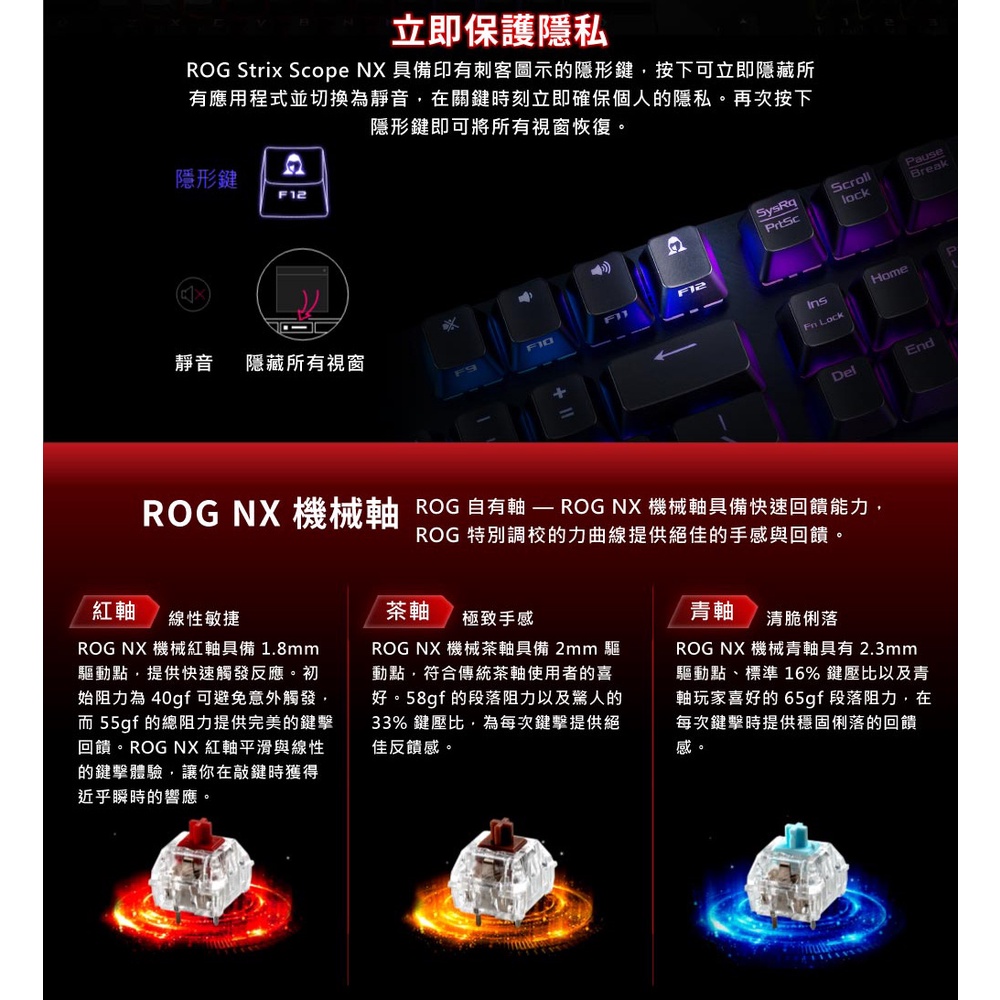 ASUS 華碩 ROG STRIX SCOPE NX 機械式鍵盤 青軸/紅軸/茶軸