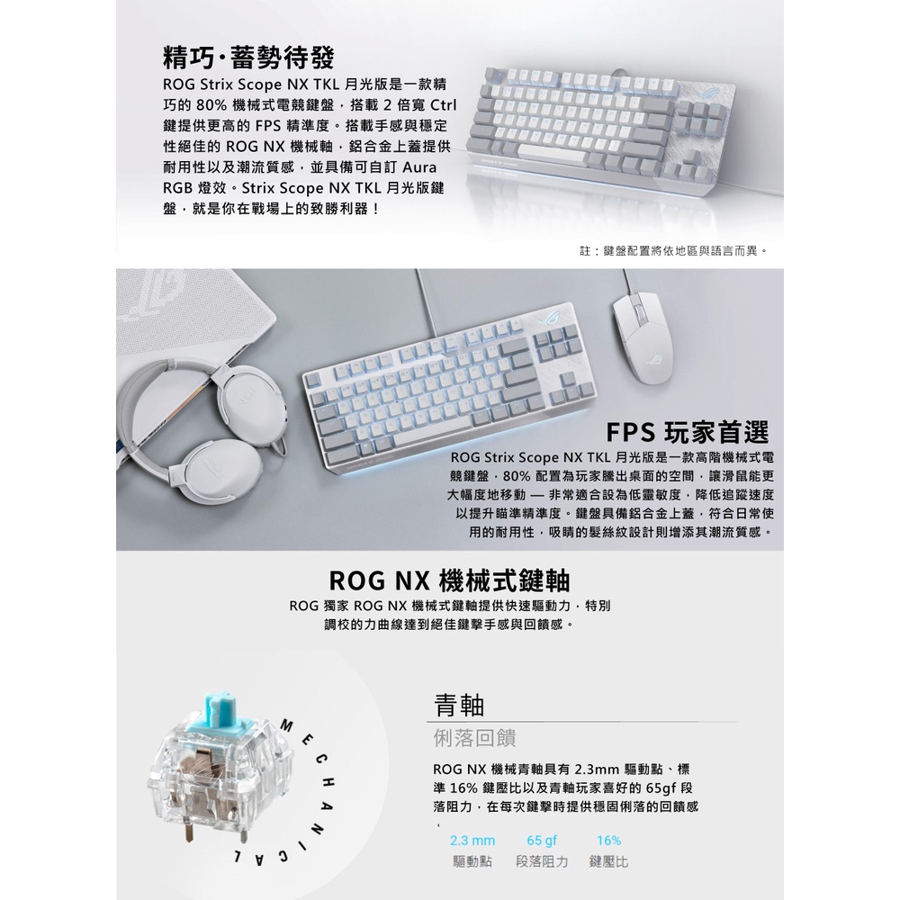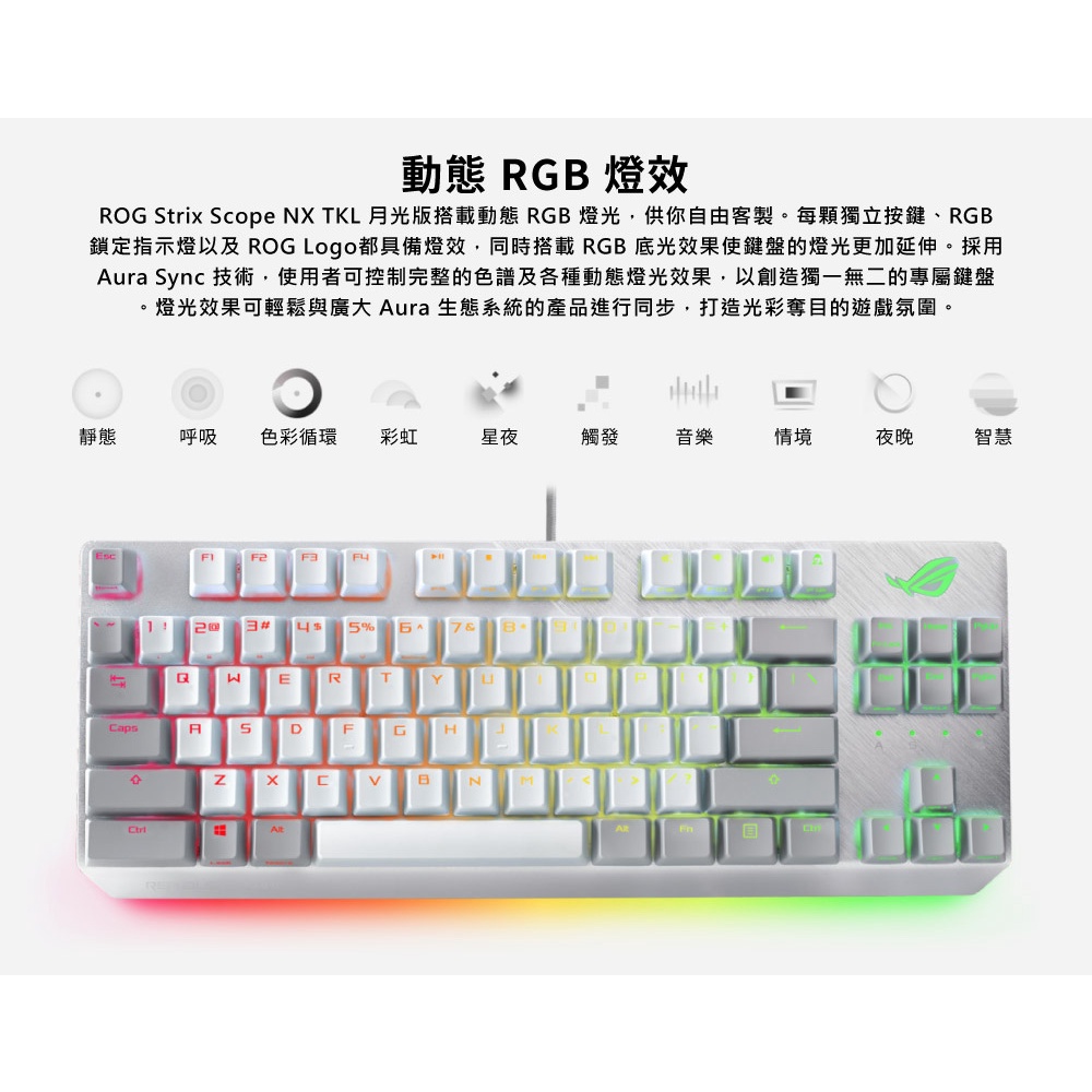 ASUS ROG Strix Scope NX TKL ML 80% 月光白 機械式鍵盤 青軸/紅軸