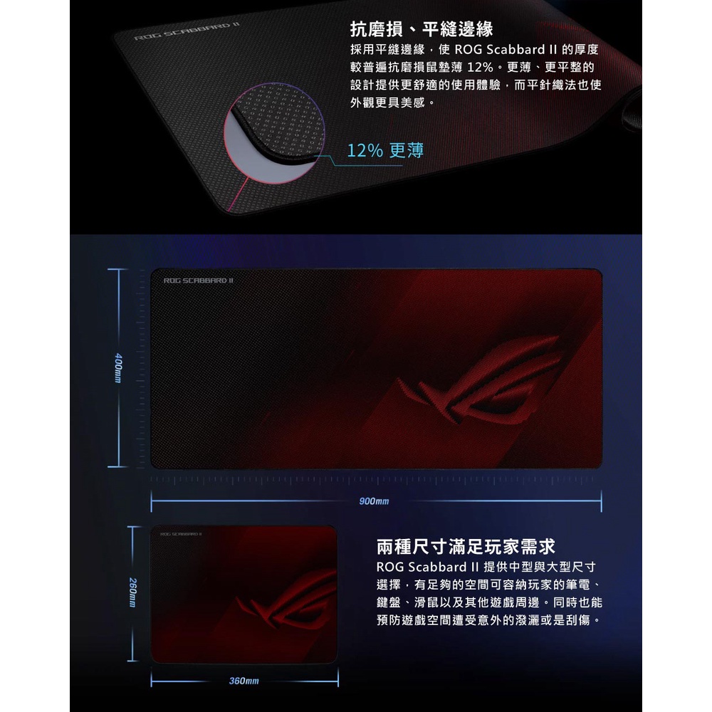 ASUS 華碩 ROG SCABBARD II Medium 電競滑鼠墊 送減壓護腕墊