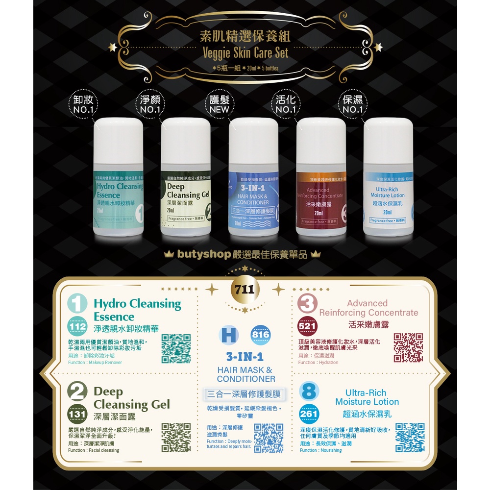 [butyshop沛莉]〈711〉素肌精選保養組/Veggie Skin Care Set (20ml x 五瓶一組)