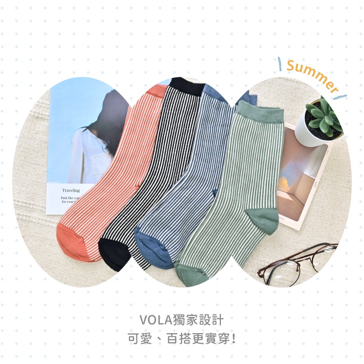 VOLA維菈 台灣製 簡約生活 經典 直紋 可愛襪 女襪 長襪 韓襪 韓國襪