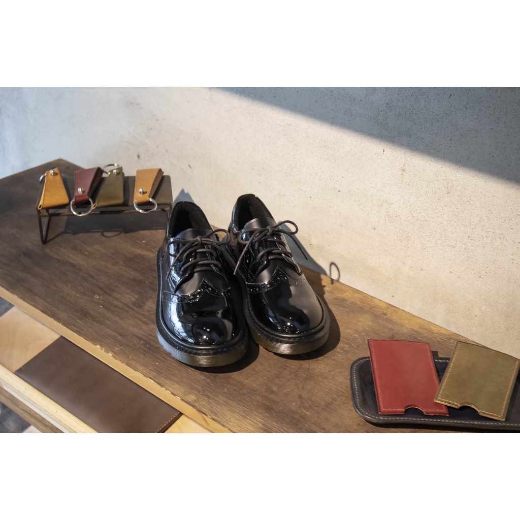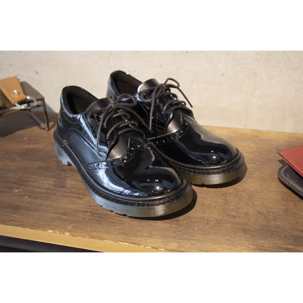 凡人與路-Monazu手工鞋 馬丁翼紋德比鞋_平光搭漆亮黑 女版35-40碼