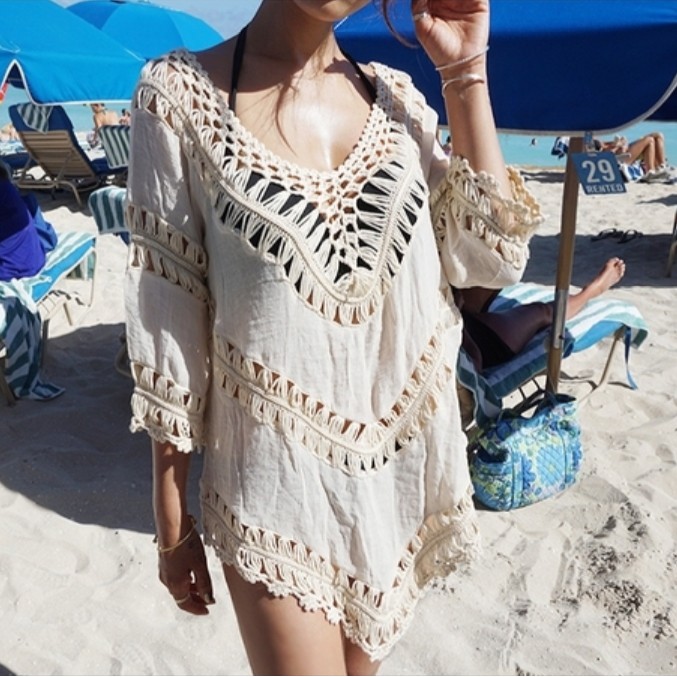 【梨卡】隔日到貨 女裝 罩衫【鏤空 辣妹風】罩衫上衣 防曬罩衫 長袖罩衫 海邊 泳衣 比基尼 C6024【現貨24H】