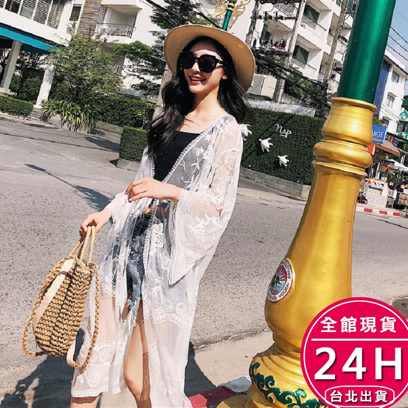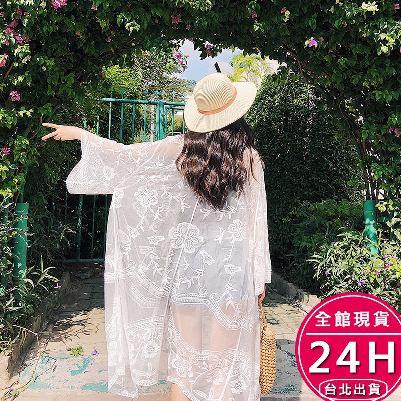 【梨卡】隔日到貨 女裝 罩衫【鉤花蕾絲】薄外套 防曬外套 防曬罩衫 罩衫外套 海邊 泳 衣 泳裝 C6234【現貨24H】